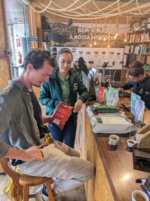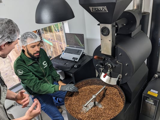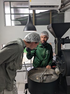 Dort angekommen, lernen wir Leute aus verschiedenen Bereichen des Teams kennen. Wir rösten eine Charge