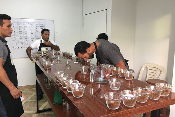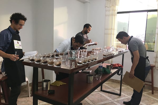Nach einer wohl verdienten Siesta sind wir nochmal mit einem Motortaxi zum Labor von Cenfro gefahren, Cupping steht an, Aufregung steigt, denn hierbei entscheiden wir welchen Blend wir für Quijote nehmen. Wir müssen also gut kalibriert und konzentriert sein, und das waren wir auch!