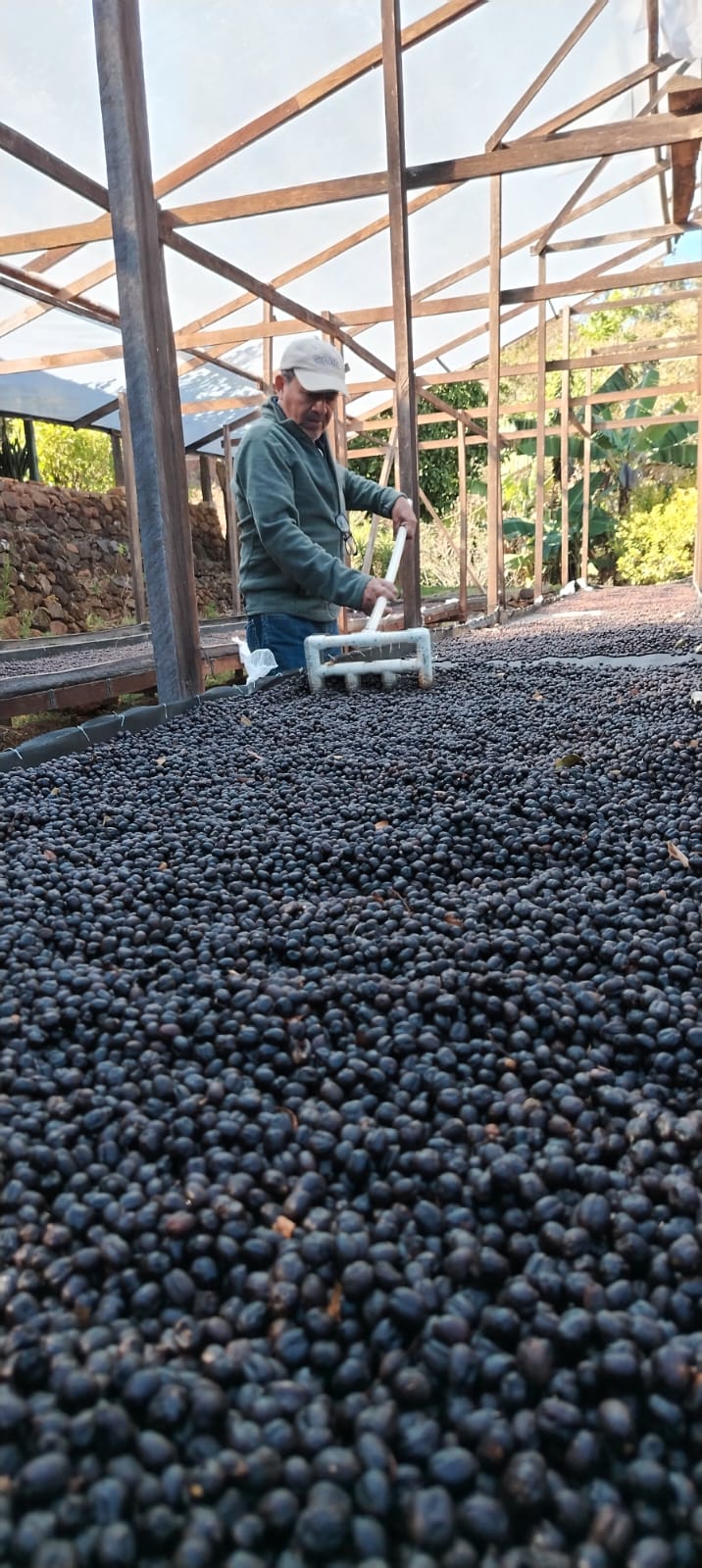 „Wir bereiten gerade den Kaffee für Quijote vor. In dieser Saison hat sich die Reifung der Ernte aufgrund der niedrigen Temperaturen – es war ziemlich kalt und sehr feucht – um etwa einen Monat verzögert.