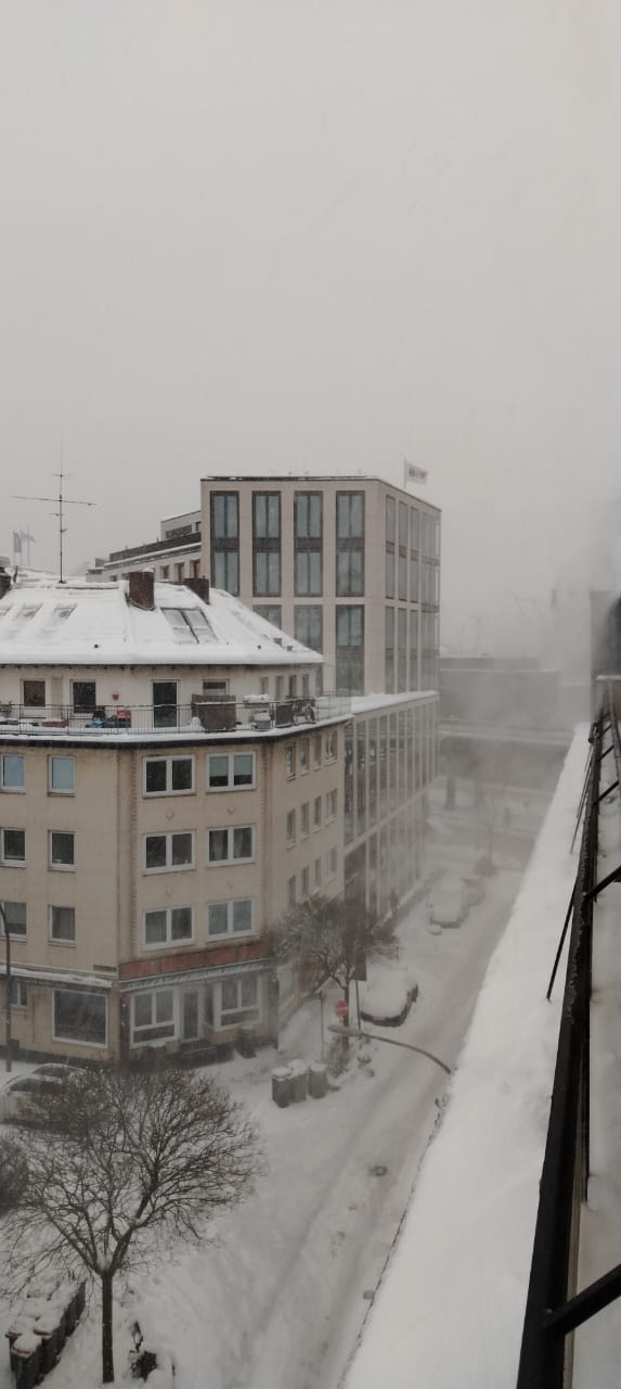 Kurzum: am 06.01.2026 waren wir alle schon wieder urlaubsreif. Für den 8. Januar war die Ankunft von Don Dagoberto, seiner Frau und seiner Begleitung in Hamburg geplant. Zwischen Warnmeldungen, Störmeldungen im Nahverkehr und Vorbereitung für die erwartete Ankunft des Sturmtiefs „Elli“. Wir hatten Don Dagoberto und seine Fahrgemeinschaft informiert, dass die Fahrt nach Hamburg aus unserer Sicht gefährlich sei. Dass sein Wohl und das seiner Frau viel wichtiger seien und wir uns entschieden hätten, dass der geplante Besuch bei Quijote / Hamburg schweren Herzens abgesagt werden müsse. Don Dagoberto nahm die Nachricht zur Kenntnis und bedankte sich für die Fürsorge. Eine Stornierung des gebuchten Hotelzimmers war nicht mehr möglich, so hatten wir gleichzeitig auch eine Unterkunft in der Hinterhand, falls ein Kollege mit Wohnort in Niedersachsen von uns in Hamburg „stranden“ würde. Am Nachmittag des 8. Januars schrieb mir Don Dagoberto, dass sie auf dem Weg seien. Auf dem Weg von Paderborn nach Hamburg. Im Wissen, dass sie vermutlich umkehren oder irgendwo auf halber Strecke stoppen müssten. Leicht panisch schickte ich Sprachnachrichten an ihn, an seine Begleitung und versuchte deutlich zu machen, dass ich wirklich ganz ernsthaft besorgt sei. Das wurde mit Emojis und Herzchen quittiert und ergänzt um das Versprechen, umzukehren oder anzuhalten, falls die Straßen nicht sicher wären. Um 19:08 Uhr schrieb mir Don Dagoberto, dass sie wohlbehalten im Hotel nahe der Landungsbrücken angekommen seien. Grinsende Smilys und Kommentare folgten. Am Freitag, dem 9. Januar begann der Tag mit für Hamburger Verhältnisse sehr viel Schnee. Wir schickten uns Fotos von dem jeweiligen Ausblick auf die jeweilige Schneelandschaft und hielten Smalltalk.