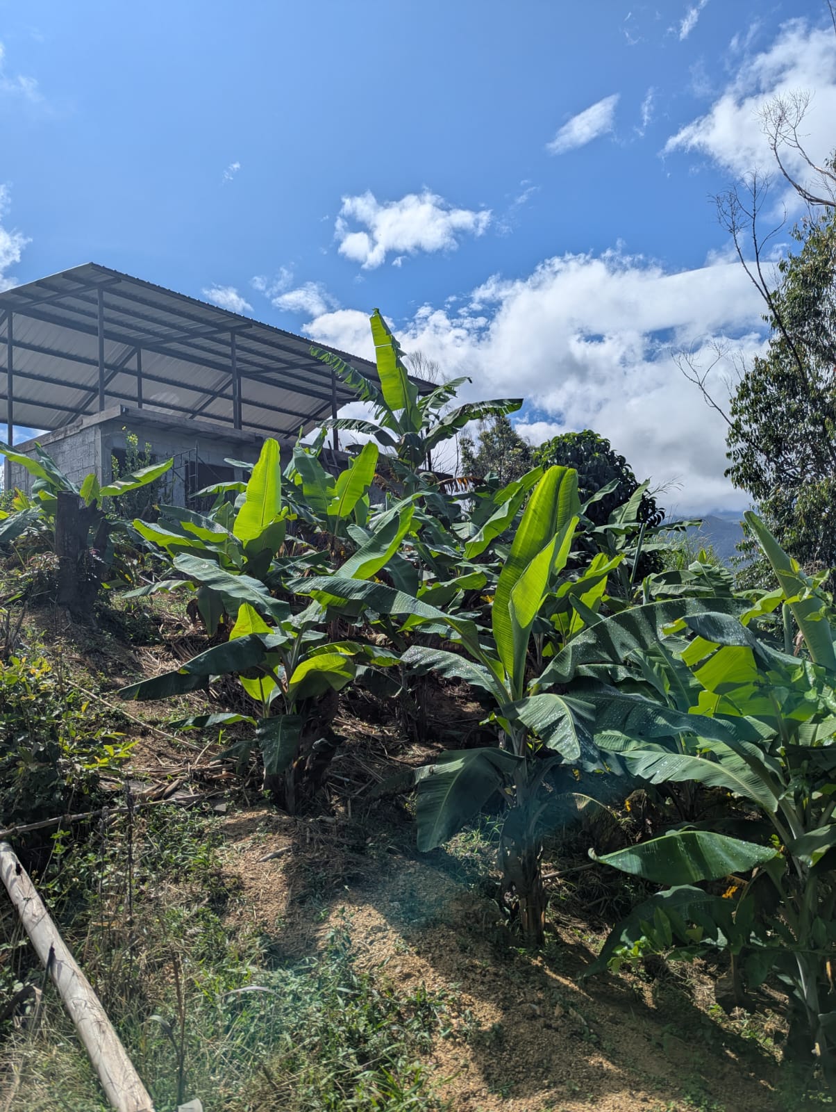 Pünktlich um 4:30 Uhr kam der Shuttleservice und brachte mich zum Flughafen. Die halbwegs gut in Schuss gehaltenen und deutlich über 30 Jahre alten Boing 737-500 von der neuen nationalen Fluggesellschaft Aeroregional bedienen hier die Linie von Quito nach Loja. Die Flugroute ist wirklich spektakulär, da sie über sehr viele Andenvulkane fliegt und der Anflug auf dem Ziel Flughafen durch enge Gebirgstäler führt. Am Flughafen von Loja erwarteten mich schon Lukas von der Avenir Rösterei und Ramiro, der Manager von der Kooperative PROCAFEQ. Lukas wird mich auf der gesamten Reise begleiten und war schon 5 Tage bei unserer Partnerkooperative PROCAP zu Besuch. Zwei Jahre nach der Katastrophe Unser erster Weg führte uns sofort zur Finca von Don Victor, den Produzenten, der bei dem Waldbrand 2024 alles verloren hatte. Ich war während der Katastrophe vor Ort und wir hatten eine Solidaritätskampagne gestartet, bei der wir damals über 15.000 Dollar eingesammelt und gespendet haben. Begleitet wurden wir heute von Cecilia, der Buchhalterin von der Kooperative und Don Victor. Victors Verarbeitungsstation ist mittlerweile neu aufgebaut und auch neue Trockenzelte wurden gerade installiert. Ein neues Bewässerungssystem ebenso. Ein bisher seit Jahrzehnten brachliegendes Stück Weideland von Victor wurde mit unserer Hilfe aufgeforstet und mit mittlerweile 6000 neuen Kaffeepflanzen der Varietäten Typica- Mejorada, Sidra und Geisha bepflanzt. Dieser Erfolg unserer gemeinsamen Anstrengung und der Solidarität so vieler unserer Freund:innen hat hier vielen Leuten Mut gemacht und ein gutes Beispiel gegeben. Ein gutes Beispiel, dass es sich lohnt, sich zu organisieren und auch in Krisen zusammenzuhalten. Ich persönlich freue mich darüber hinaus sehr auf die erste Ernte in zwei Jahren. Don Victor hat versprochen, dass der Kaffee dann für uns ist.
