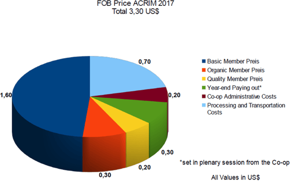 In the following sheet we will show at the exemple of ACRIM how the FOB-price of 3,30 US$ per lib. is made up and how much every member receives. We will fine-tune these data in the next weeks and publish them for more co-ops.